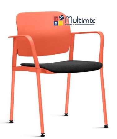 Braços fixos, injetados em polipropileno na mesma cor do assento e encosto, com bordas arredondas, apresentando espessura mínima de 4,0 mm.