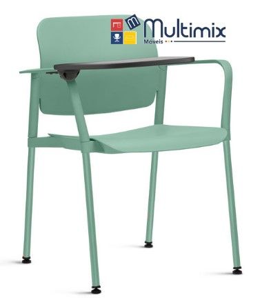 Estrutura manufaturada em aço carbono tubular de seção cilíndrica, com diâmetro mínimo de 22,00 mm, com espessura de parede entre 1,90 e 2,25 mm, do tipo quatro pés, com tratamento de superfície por meio de pintura a pó, através do processo de deposição eletrostática, passando pelos processos de desengraxe, para ser utilizada com braços e prancheta.
