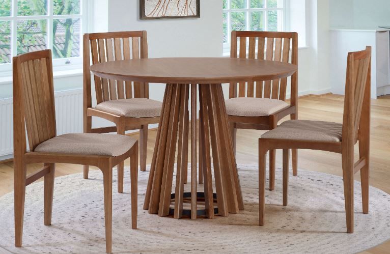 Mesa para Área Gourmet Redonda em Madeira Michigan | Acabamento em Verniz - Espaço Casa e Jardim
